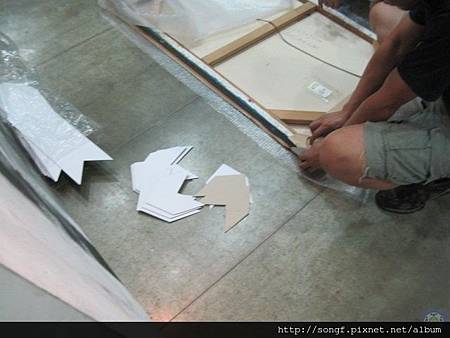 所有的畫作先用防水牛皮紙將畫的外面覆蓋住