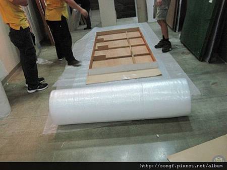 於是客人委託台北松福搬家公司協助他們進行打木箱前的包裝工程